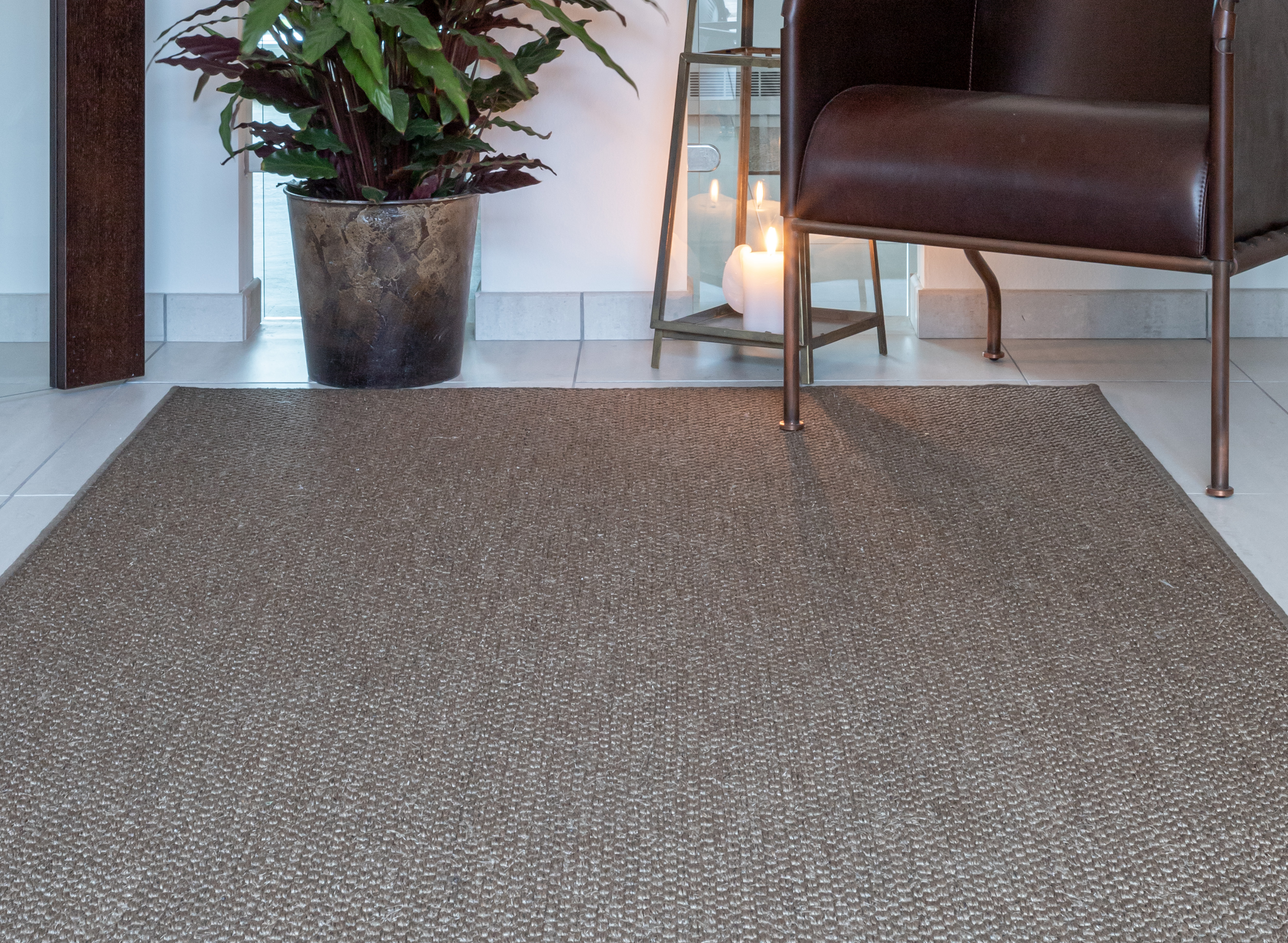 Sisal - Naturnära och robust. Sisalmattor tillverkas av agaveplantans starka fibrer och ger en texturrik känsla av äkta natur. Mattan är slitstark och är populär både i hemmet och i offentlig miljö. En matta i sisal är lika fin som heltäckningsmatta som måttanpassad med kantband eller langett. Ej för fuktiga rum, men fungerar oftast bra i trappor.